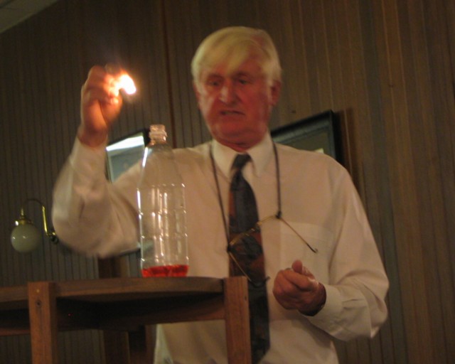 2005 AGM dinner The AGM after-dinner speaker, Professor Michael Gore, demonstrates a simple cloud chamber.