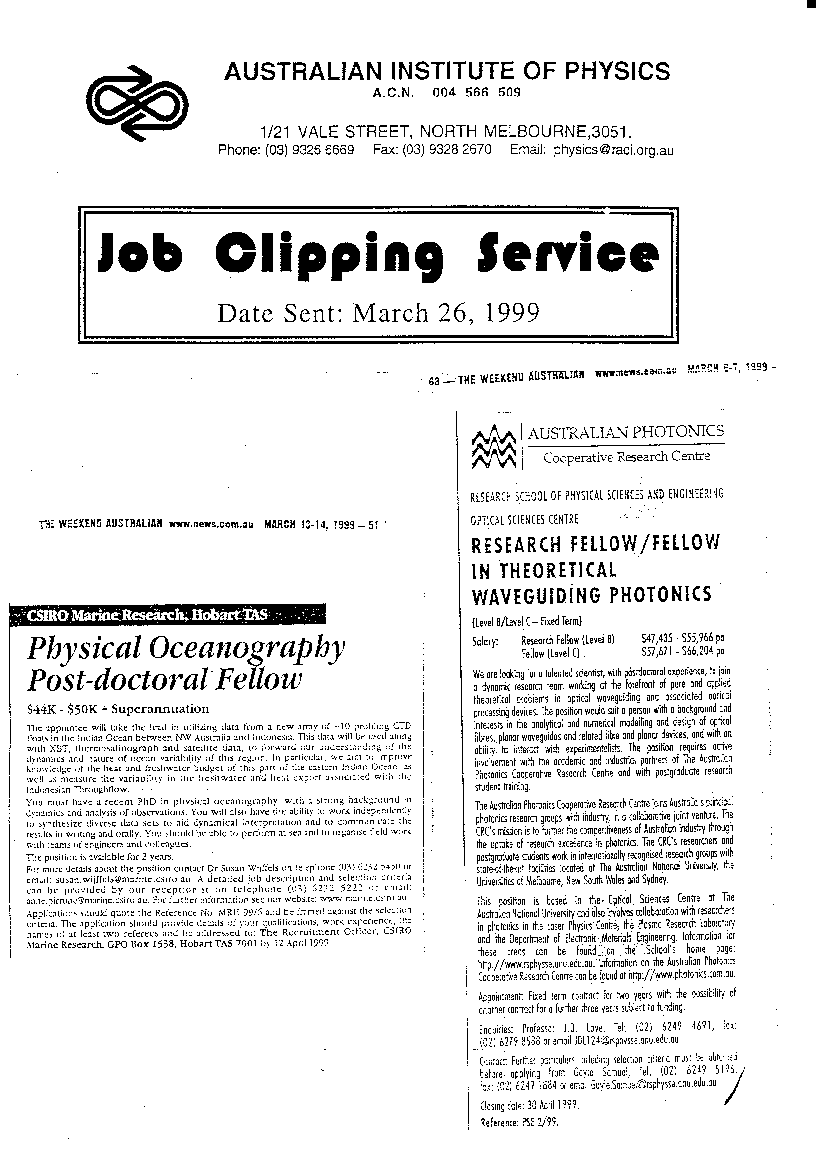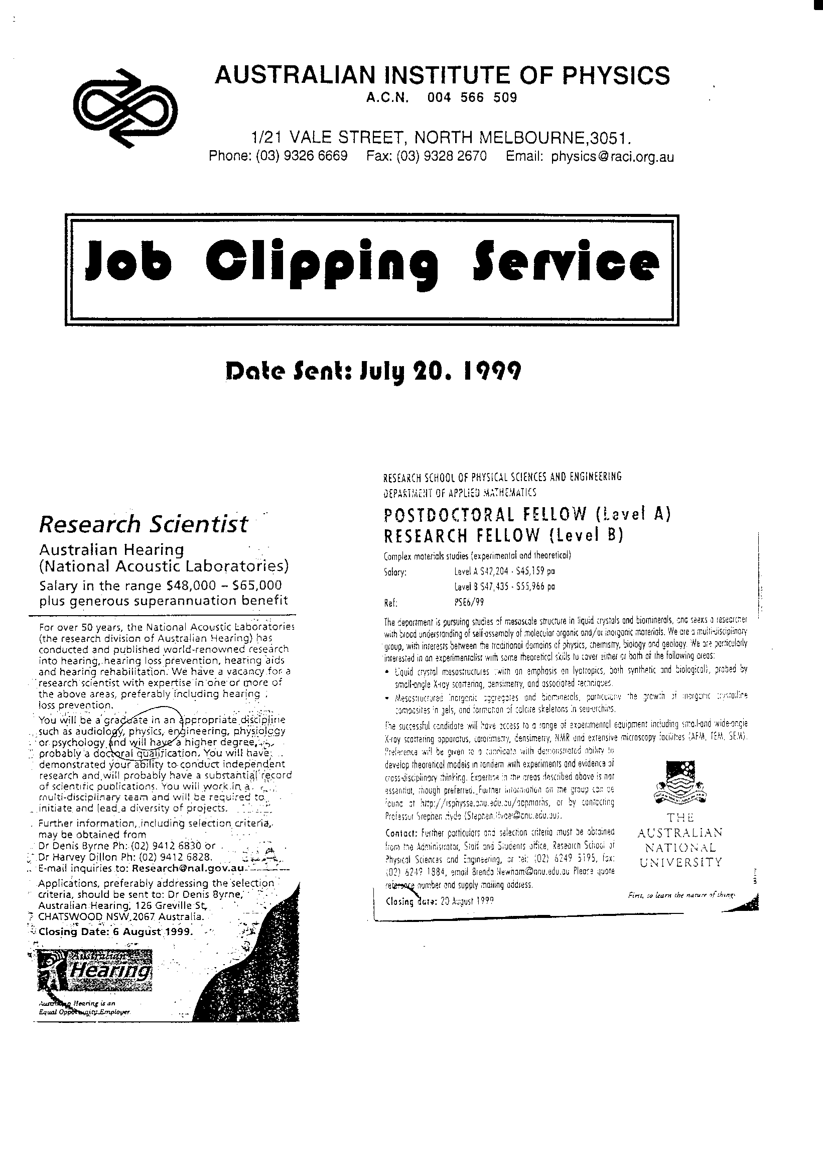 AIP Job Clipping Service Archive