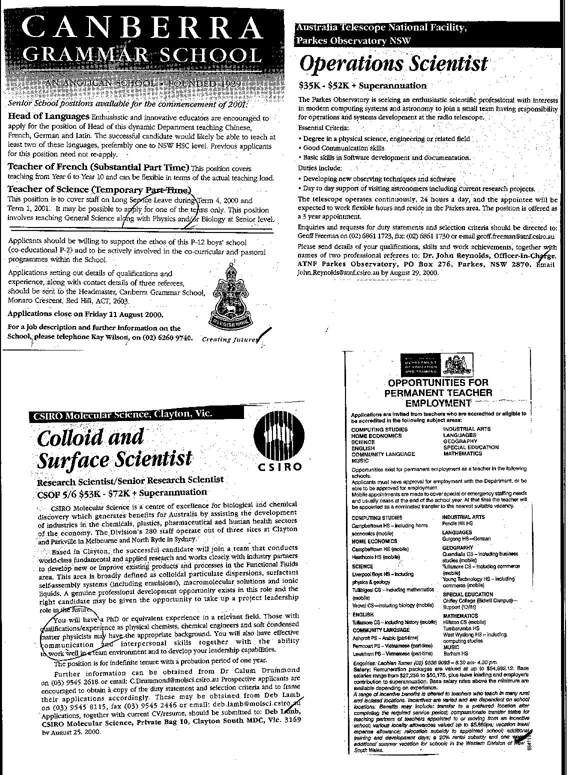 4th August 2000 Postings