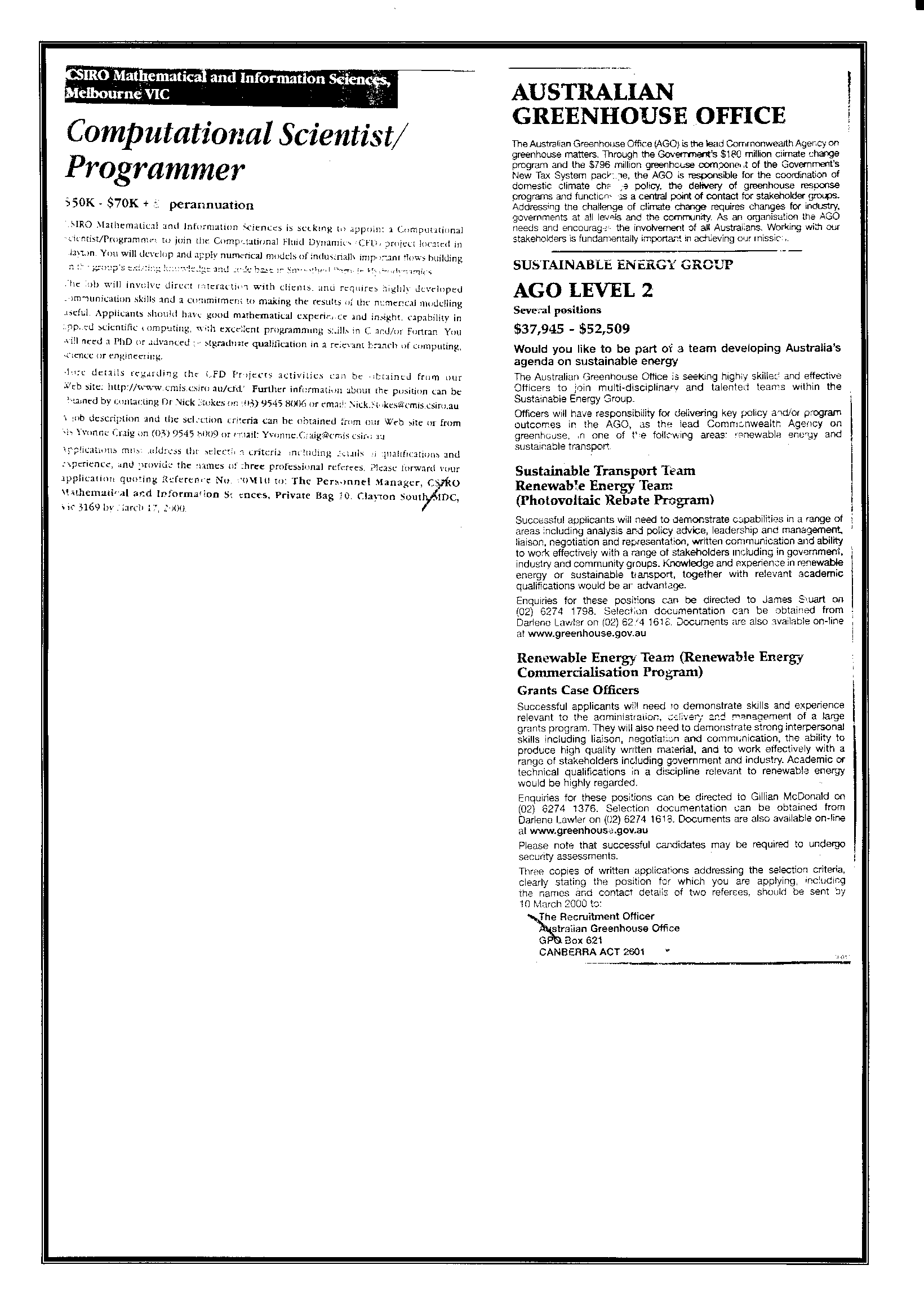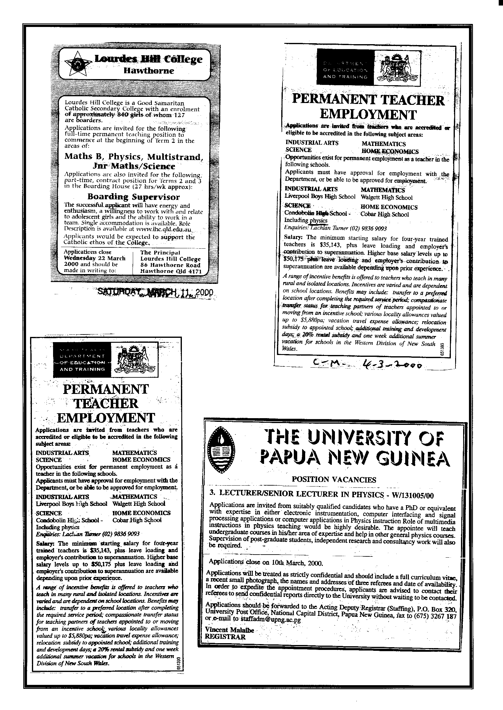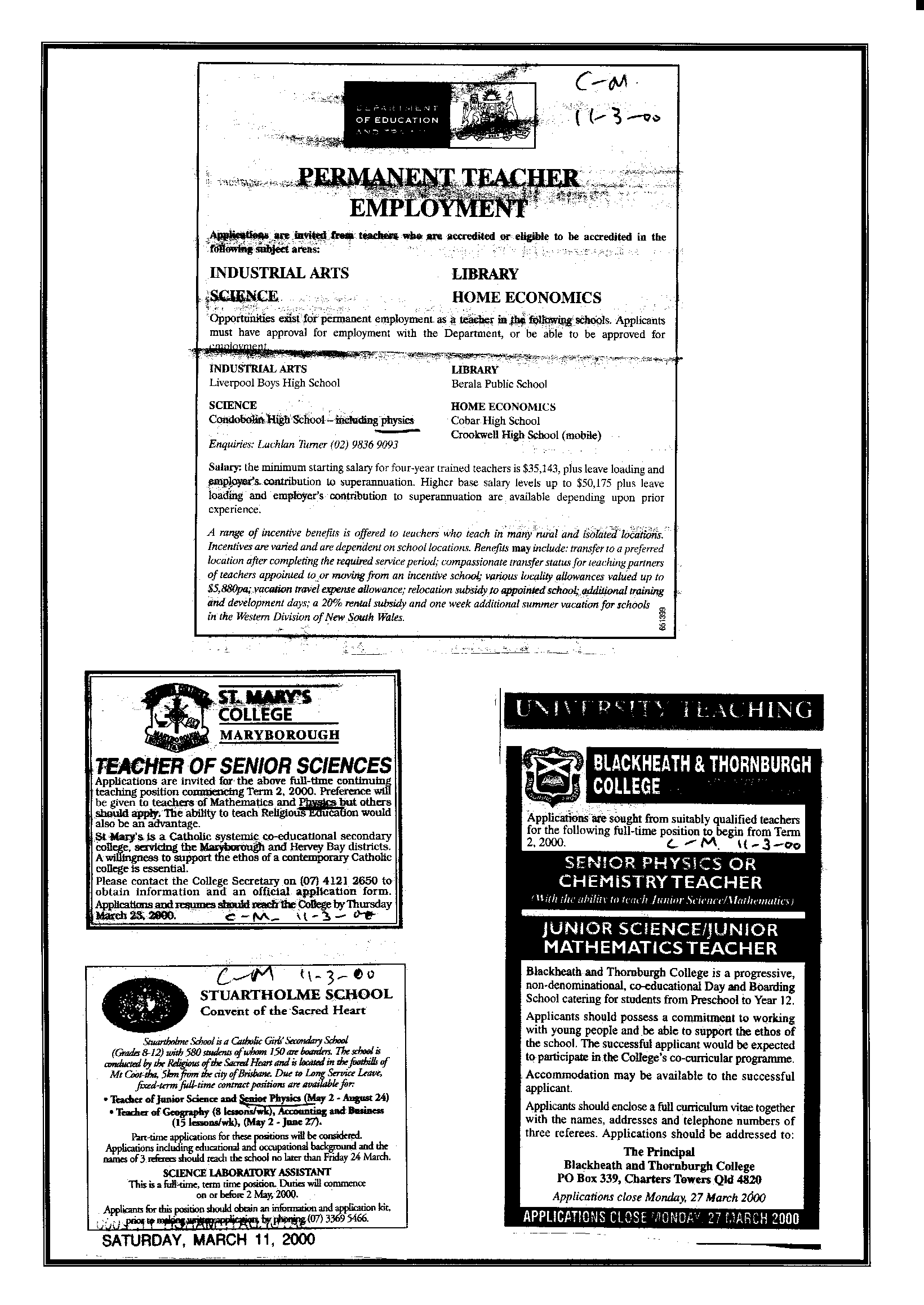 10th March 2000 Postings