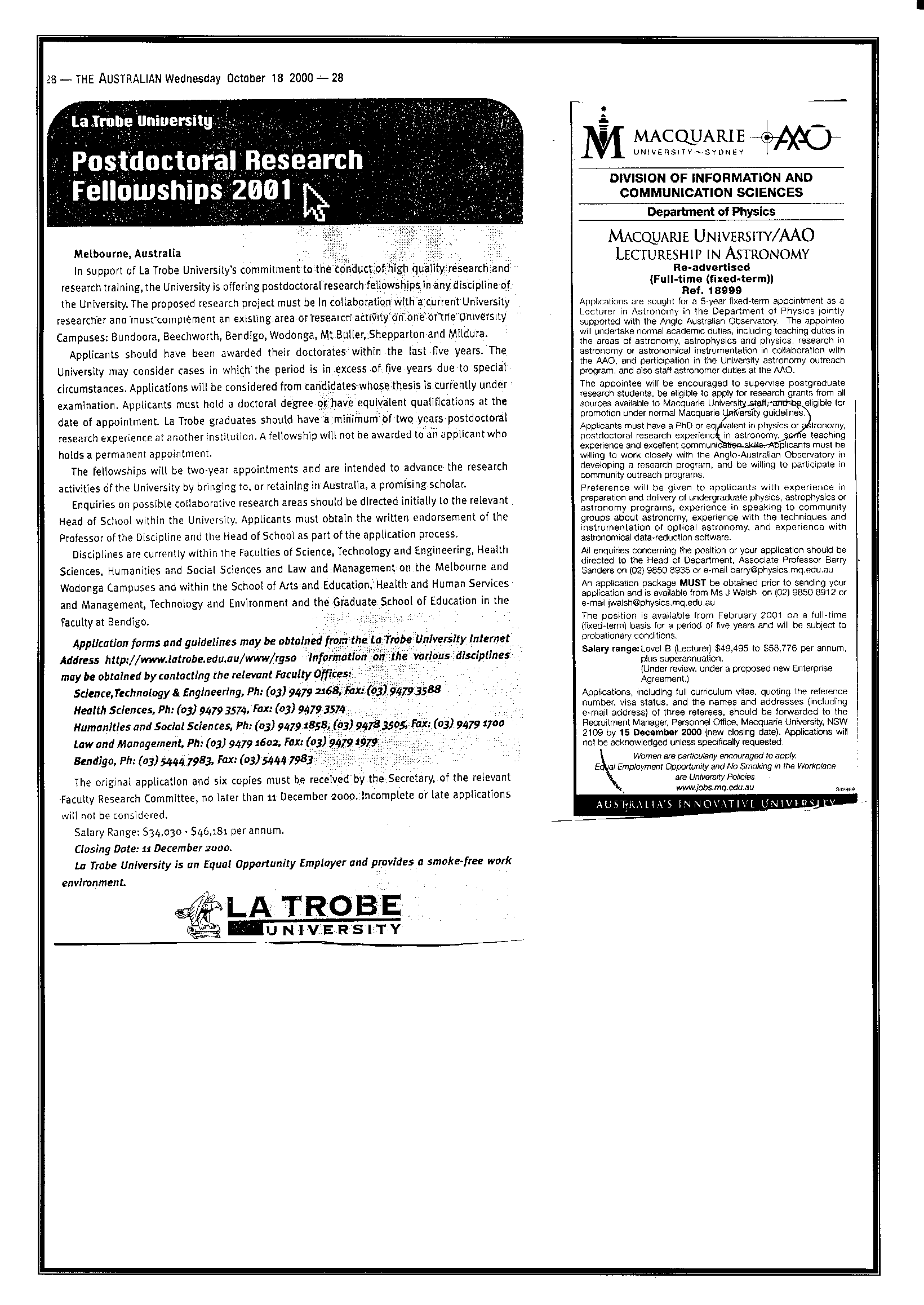 30th October 2001 Postings