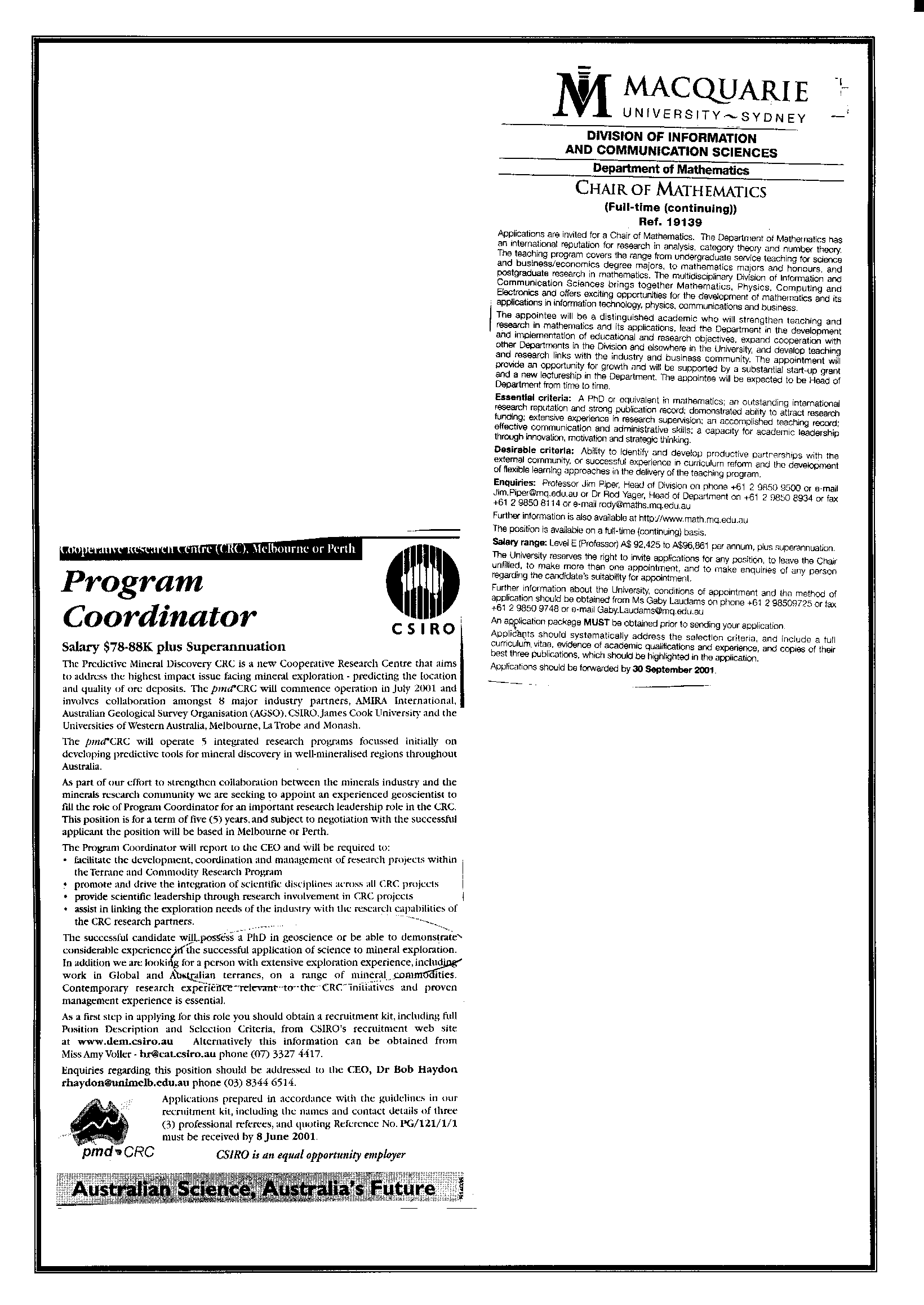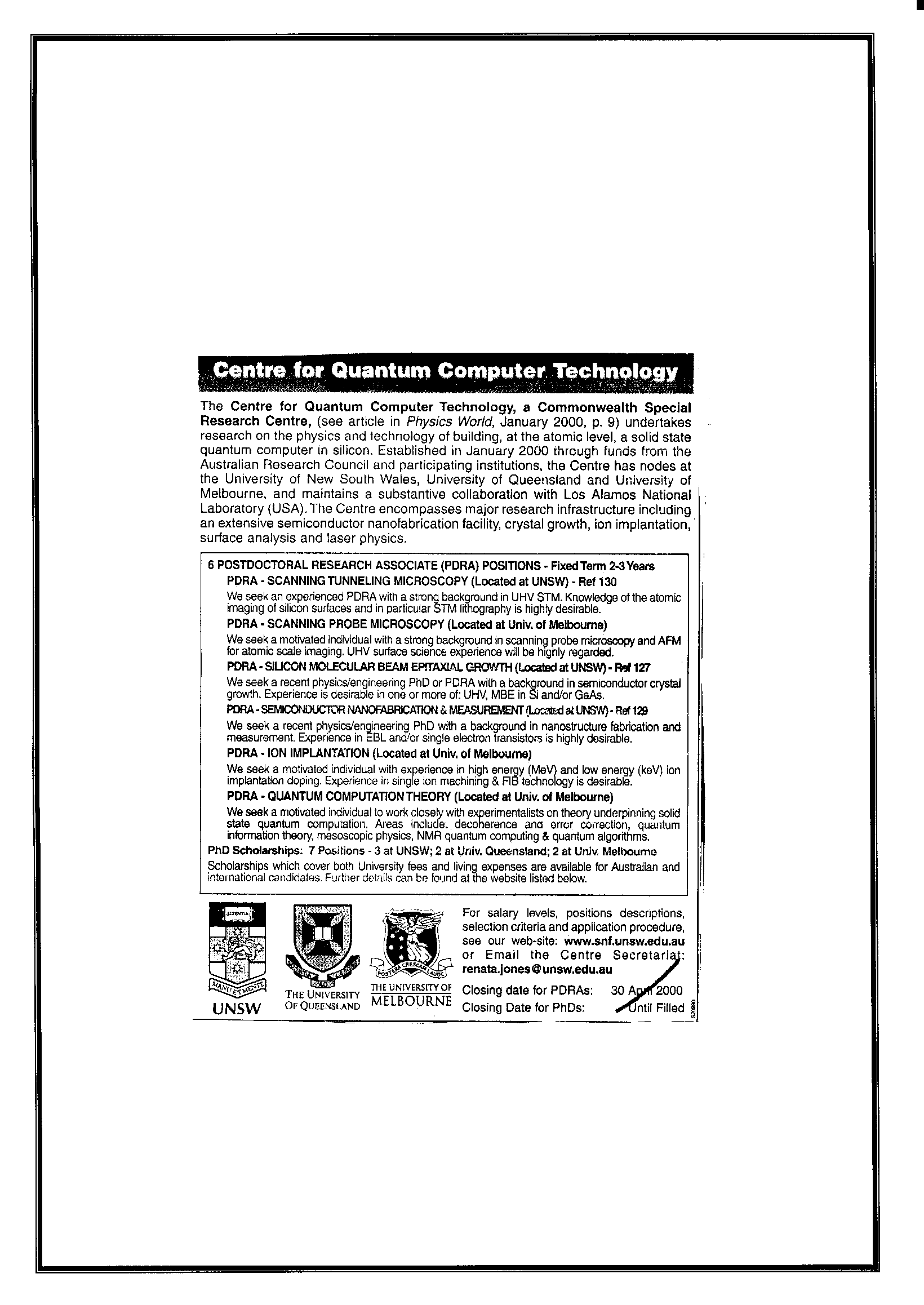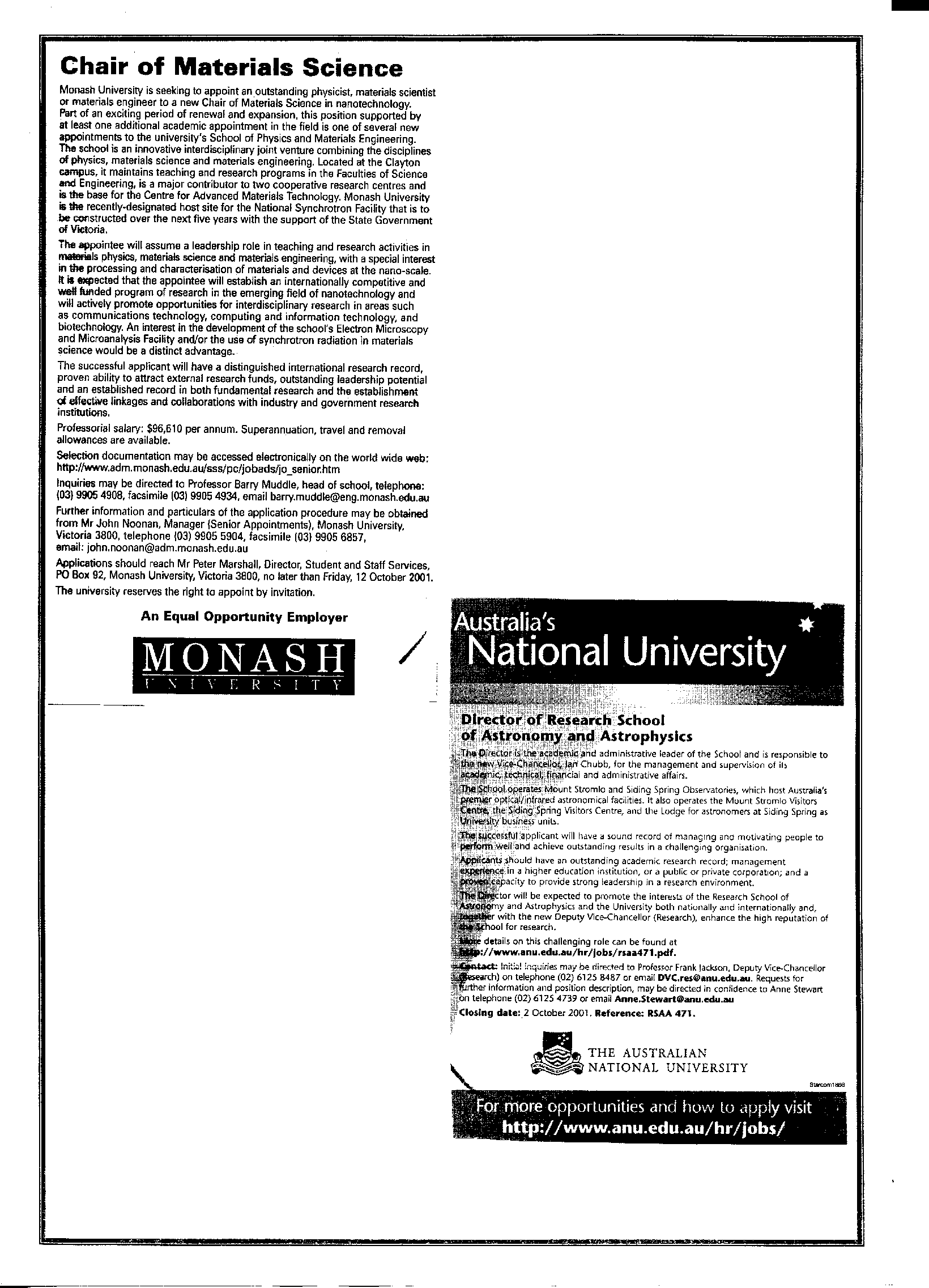10th April 2001 Postings
