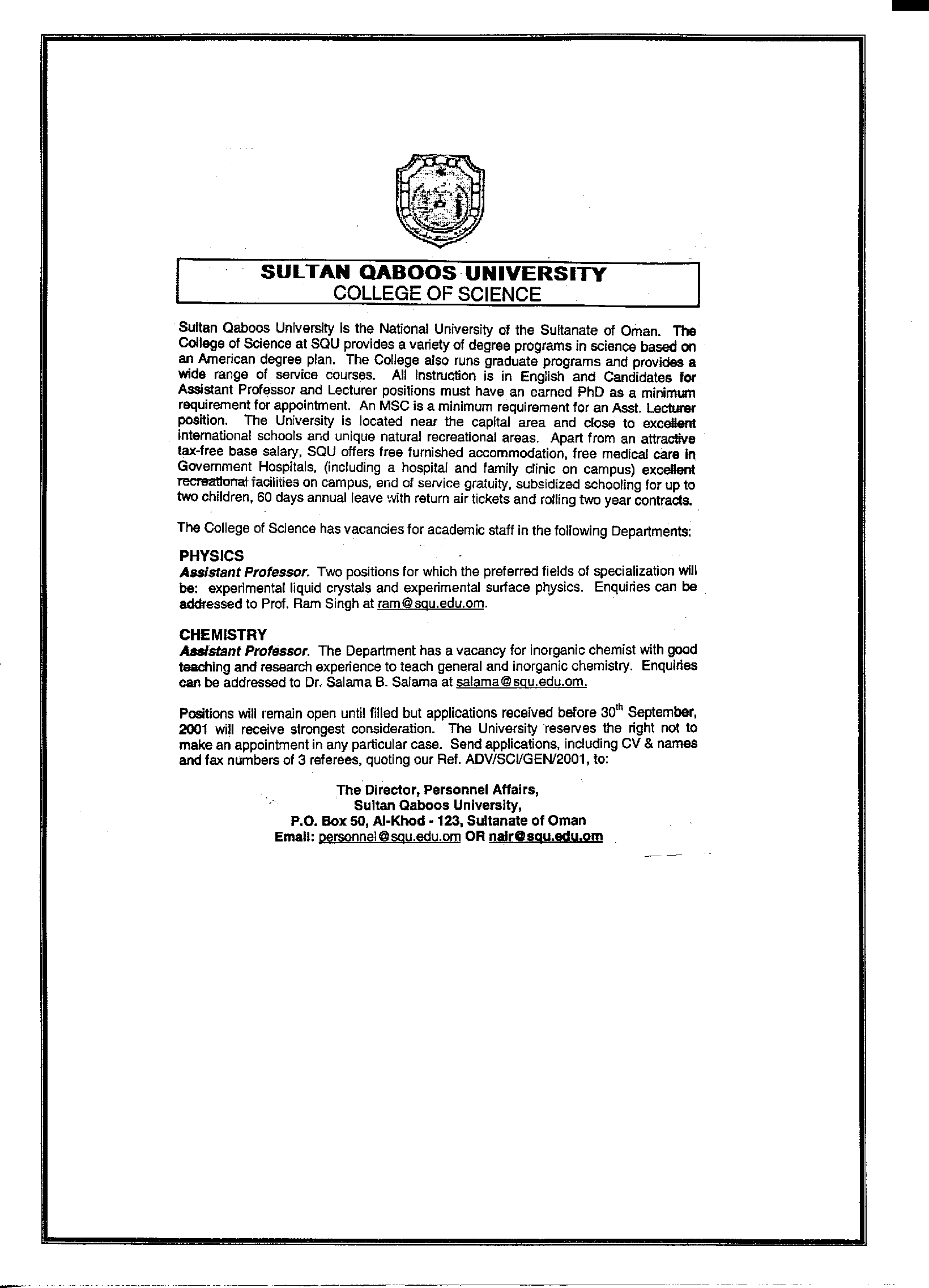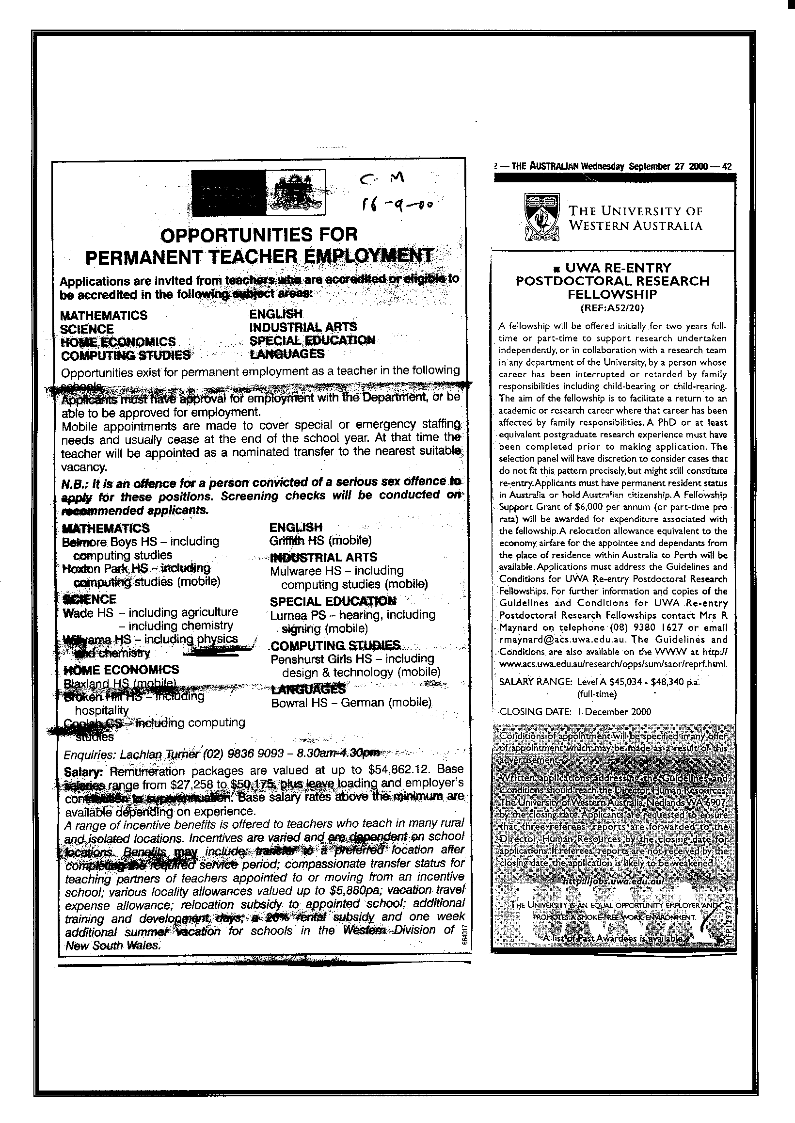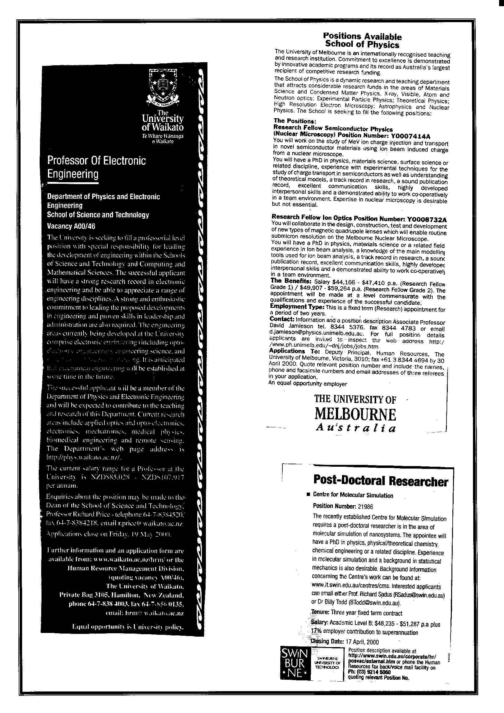 10th April 2001 Postings