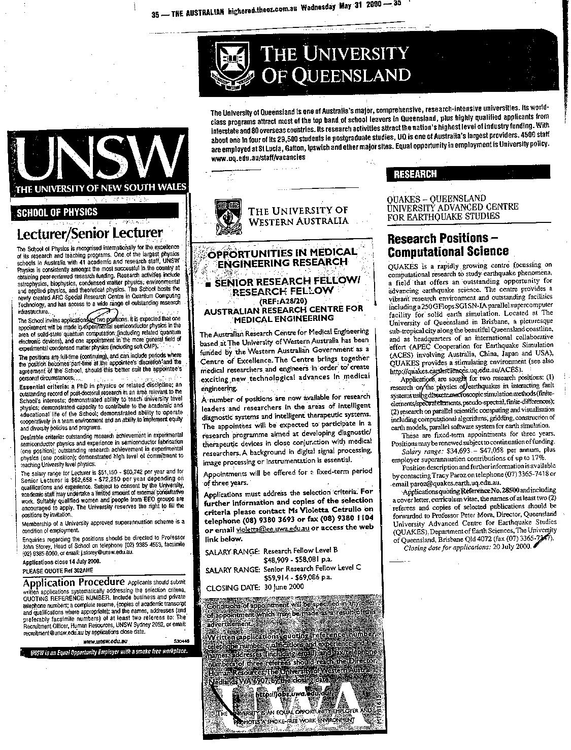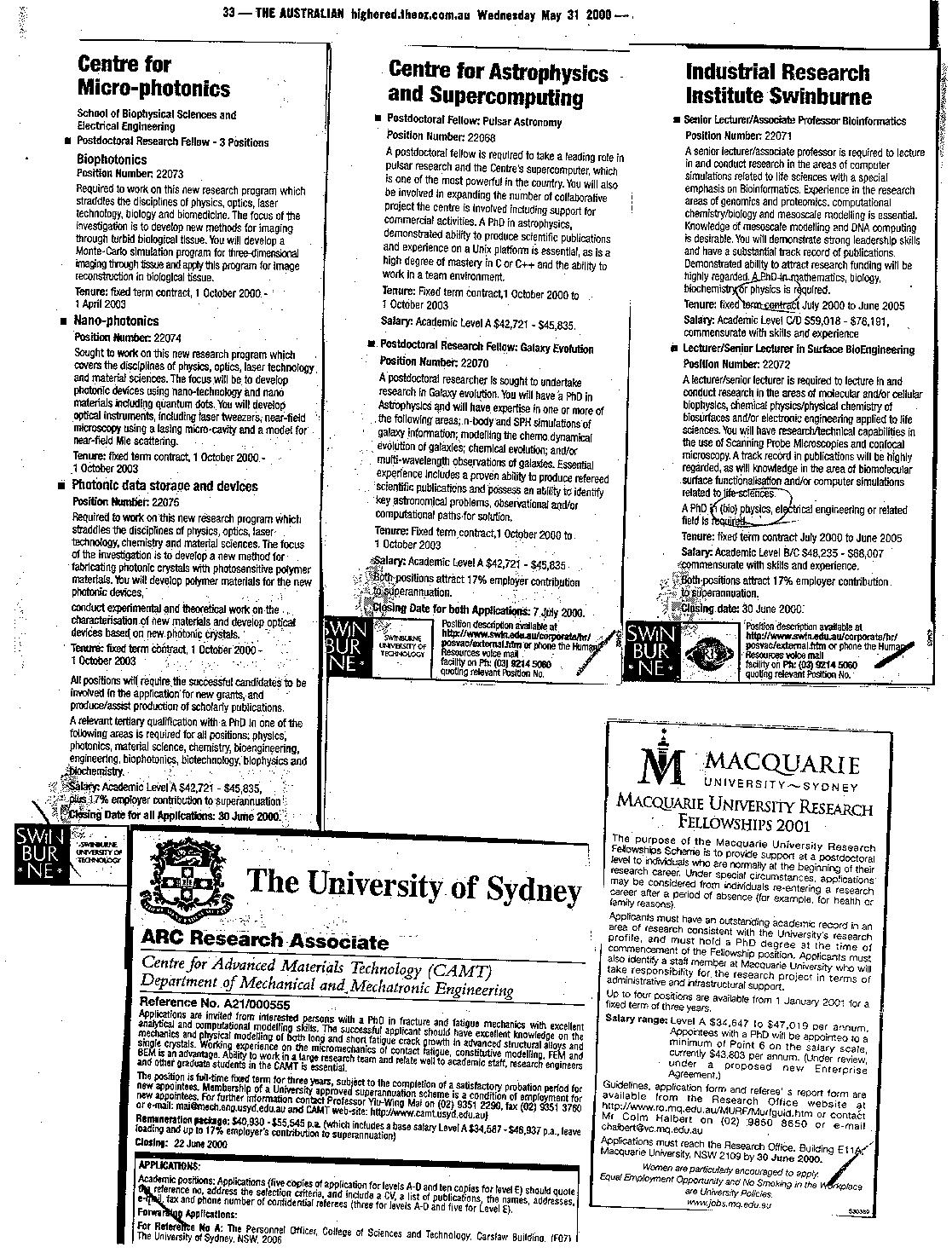 30th May 2001 Postings