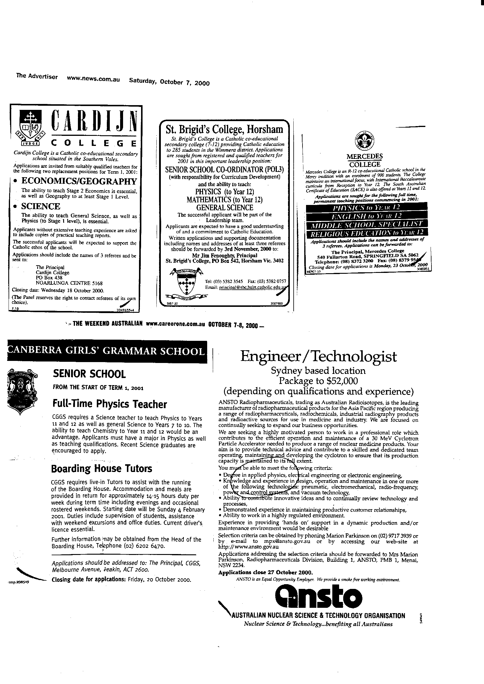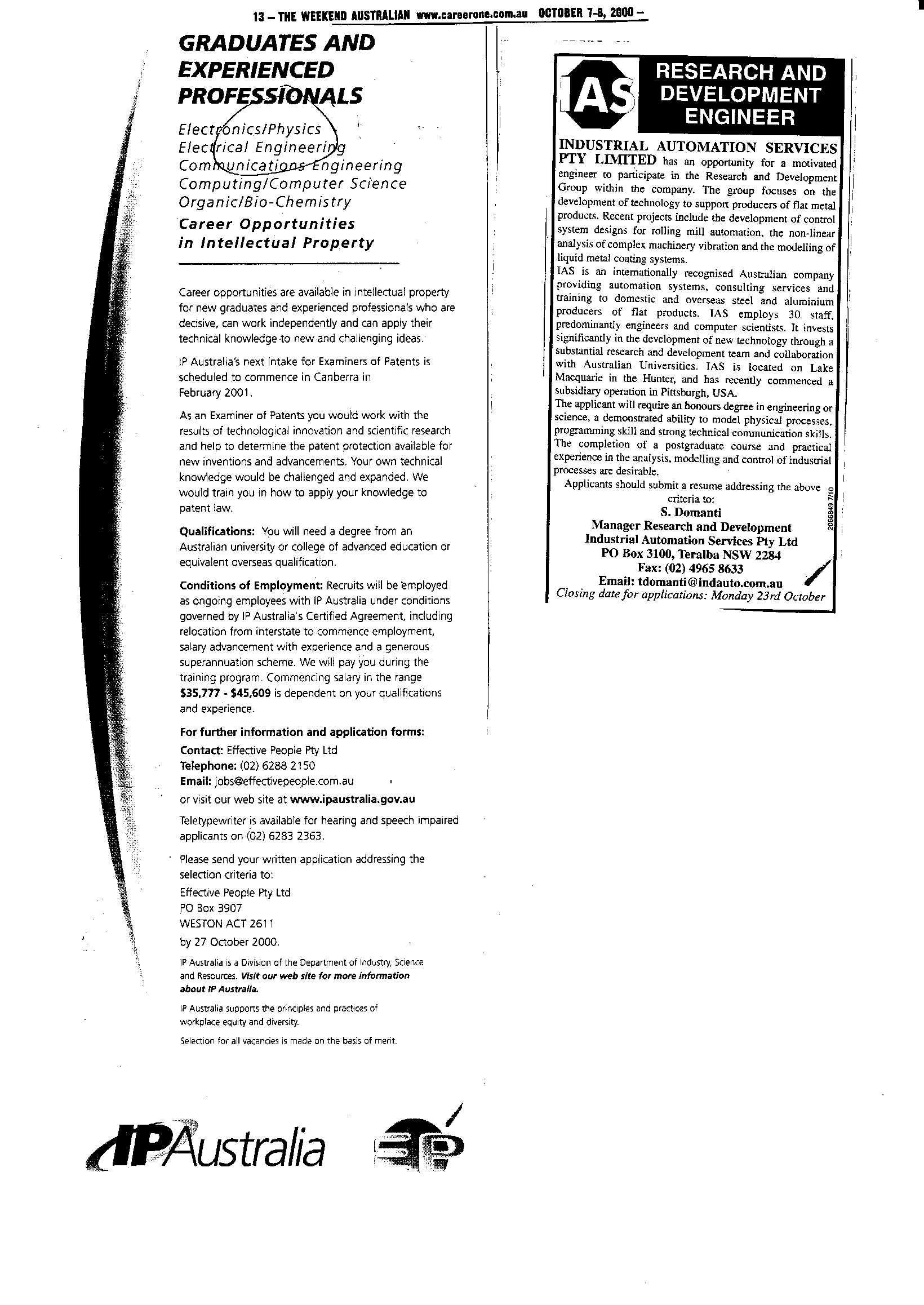 13th October 2000 Postings