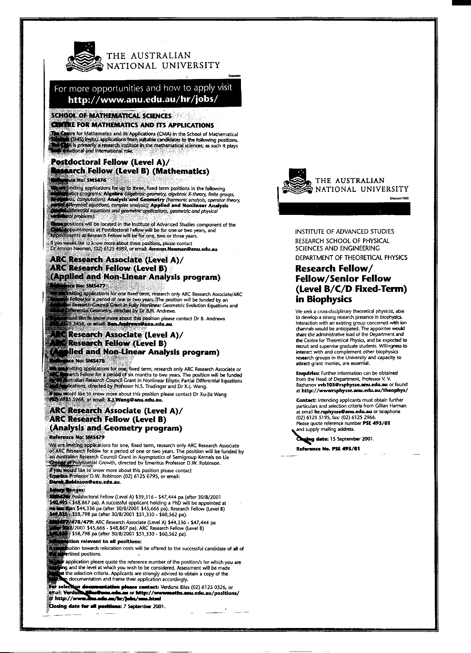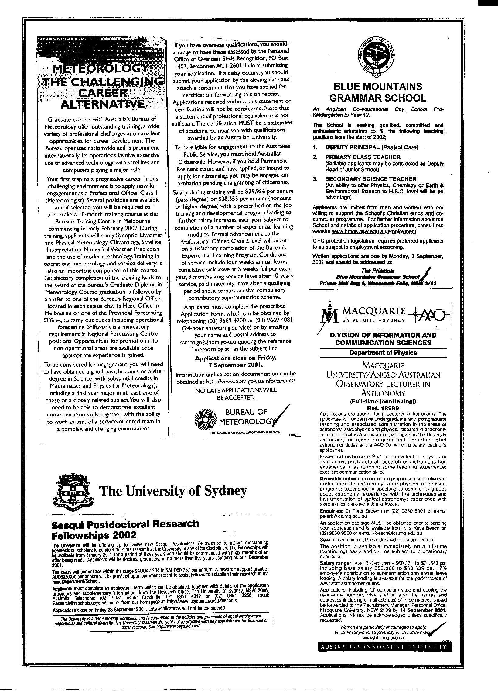 22rd August 2001 Postings